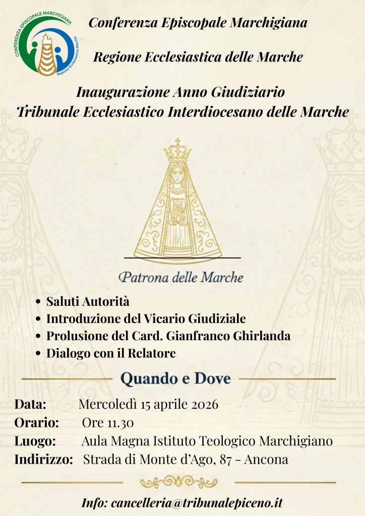 In EvidenzaApertura Anno Giudiziario 2026Tribunale Ecclesiastico Interdiocesano delle Marche martedì 3 Marzo 2026martedì 3 Marzo 2026ManifestoAperturaAG2026