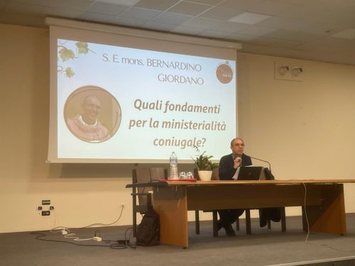 Il convegno è stato aperto dalla preghiera del Vescovo delegato per la pastorale familiare della CEM, S. E. mons. Fabio Dal Cin, Arcivescovo Prelato di Loreto. È proseguito con l’intervento di S.E. mons. Bernardino Giordano, vescovo di Grosseto e Pitigliano Sovana Orbetello, che ha offerto una riflessione sui fondamenti della ministerialità coniugale, richiamando il valore del sacramento del matrimonio come autentica vocazione ecclesiale, avente origine dal battesimo dei singoli, per divenire una realtà nuova nel NOI di coppia. Gli sposi, ha sottolineato il vescovo, sono chiamati a vivere e testimoniare il Vangelo nella concretezza della vita quotidiana, diventando segno dell’amore di Cristo nella famiglia e nella comunità, sperimentando ogni giorno la presenza vera e reale di Gesù nella coppia.
