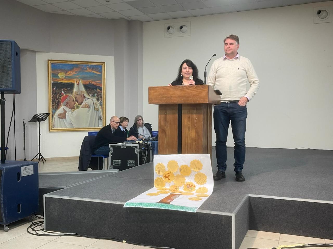Particolarmente significative sono state le due testimonianze di vita e di ministero. Francesco e Graziella Gobbi hanno condiviso la loro esperienza di servizio presso il Santuario della Santa Casa di Loreto, raccontando come la loro vocazione coniugale si sia tradotta negli anni in un impegno di accoglienza e ascolto, nell’educazione dei figli e nell’incontro con tante altre famiglie. La giovane coppia Lorenzo e Jlenia Pucci ha invece portato la propria testimonianza di formazione e crescita attraverso il Percorso regionale del Vino Buono, che li ha accompagnati per due anni. Oggi, questa esperienza li vede impegnati nel direttivo di pastorale familiare della Diocesi di Ancona, come segno di una Chiesa che investe e crede nelle giovani famiglie.