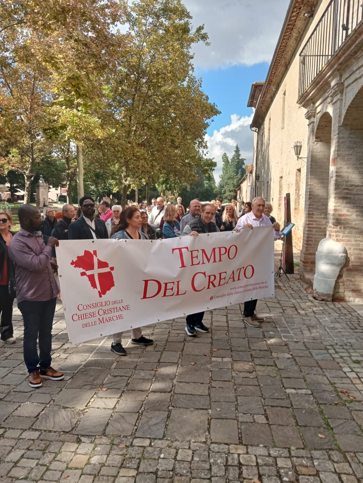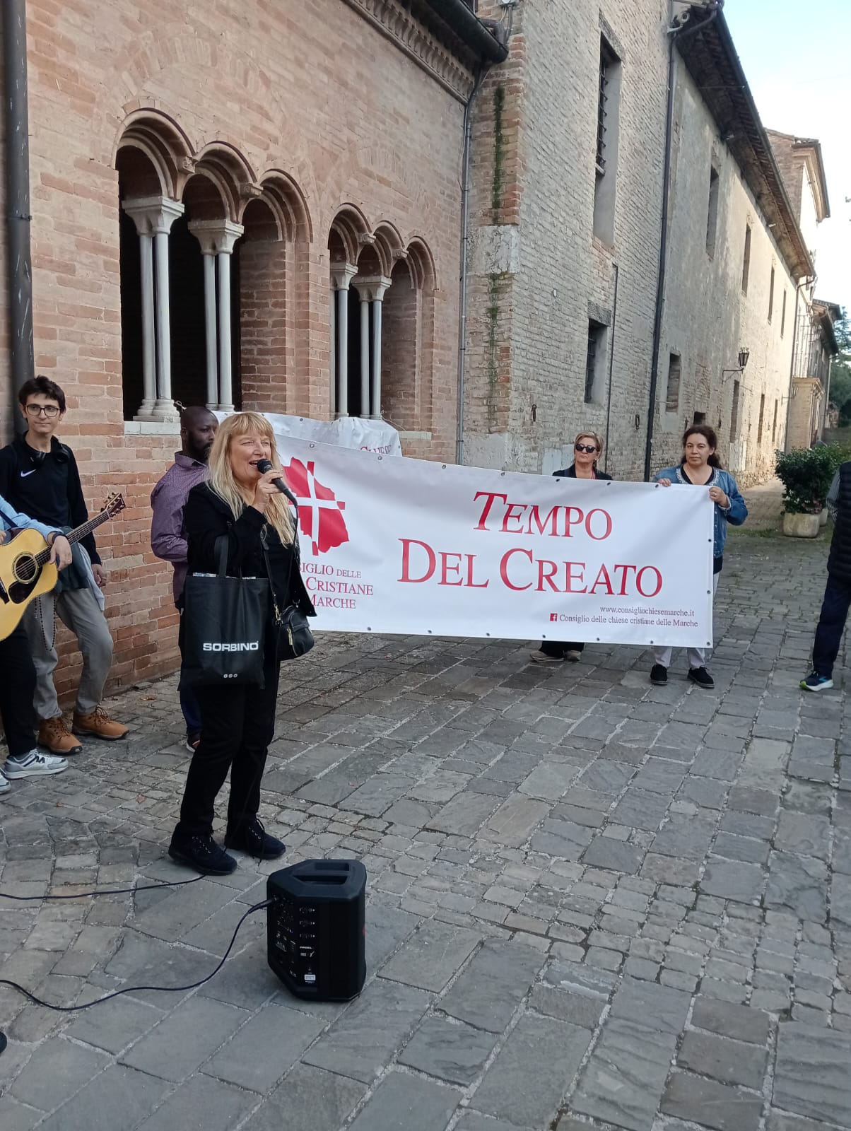 Il 28 settembre 2025 come Ufficio Regionale per l’Ecumenismo in collaborazione con il Consiglio delle Chiese Cristiane delle Marche abbiamo organizzato all’Abbadia di Fiastra un evento ecumenico per la XX Giornata del Creato, per la quale papa Francesco aveva scelto il titolo “Segni di pace e di speranza”. L’evento è stato strutturato in due fasi: nella prima fase si è effettuata una passeggiata con diverse “stazioni”, una per ogni chiesa presente che ha proposto una preghiera per la pace secondo la propria sensibilità e tradizione, e tutte unificate idealmente dalla musica eseguita al violino dalla violinista slava Snezana Tintor. Nella seconda parte della giornata si è svolto in Abbazia lo spettacolo musicale ecumenico Tue son le laudi. Francesco d’Assisi e i testimoni del vangelo, uno spettacolo con canzoni inedite creato dai Divivaluce per l’anniversario francescano e per questo specifico evento ecumenico, accogliendo i contributi di grandi figure delle altre chiese, come Pavel Florenskij, Bonhoeffer, Velimirovic, Martin Luther King, Ellen White. Gli esponenti delle altre chiese si sono commossi a veder accolto e valorizzato il contributo di persone fondamentali per la propria tradizione, e hanno affermato di non aver mai vissuto un momento ecumenico così intenso attraverso l’arte. Molti turisti e “persone di passaggio” si sono aggiunte a noi coinvolte dal forte clima di spiritualità. Dopo il Padre nostro recitato insieme e la benedizione conclusiva, un variegato buffet di dolci a conclusione della giornata ha contribuito alla festa e al clima di comunione.